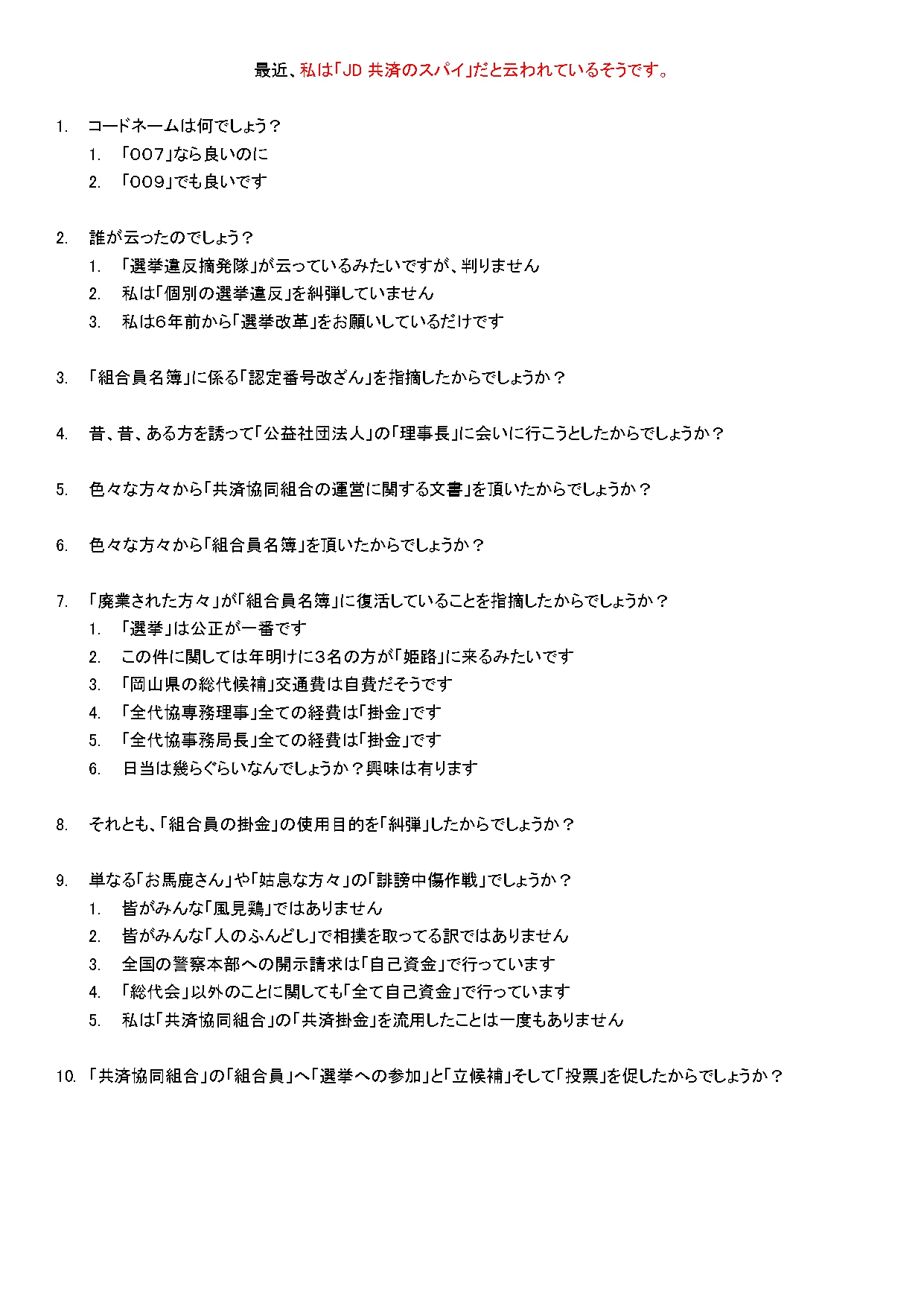 - 私の考えでは、一番の選挙違反者は「共済協同組合」であると思います
