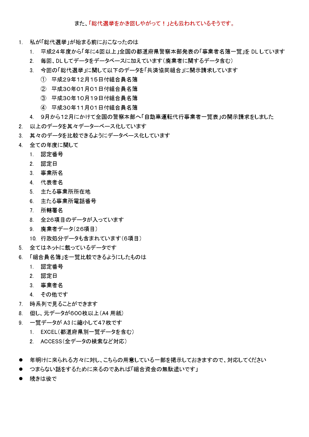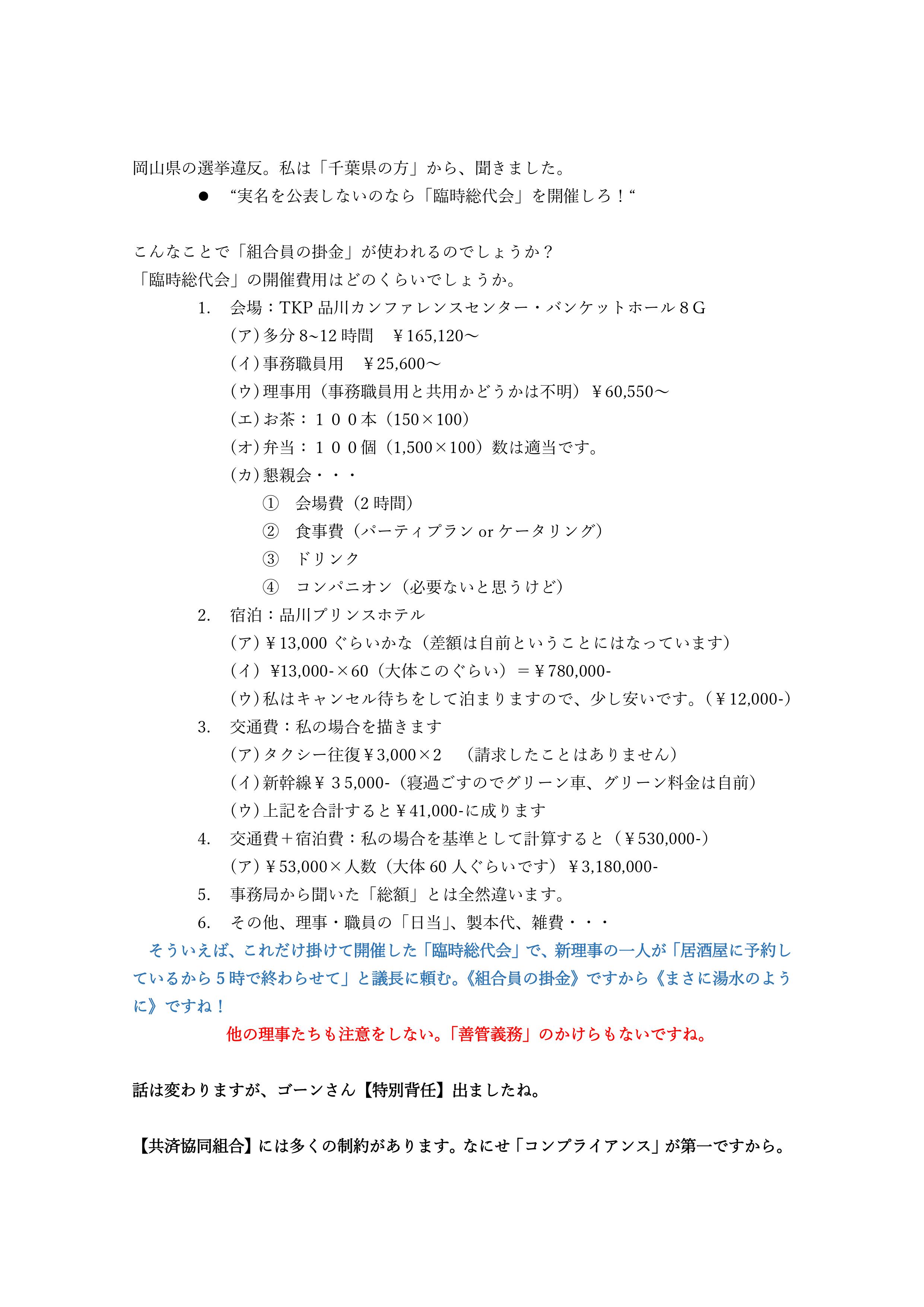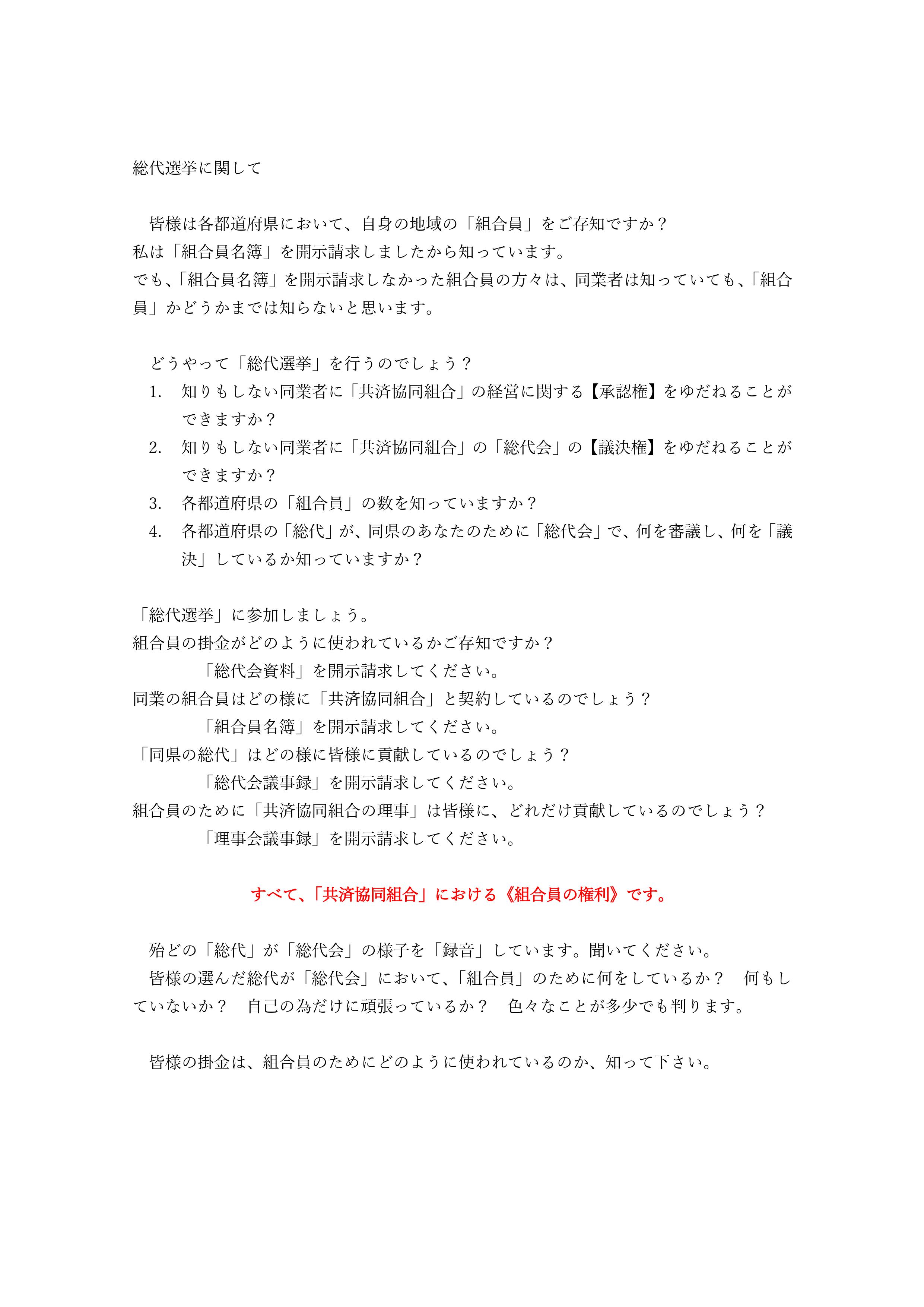- ならば、いつものように郵送で「告知文」や「資料など」が、「全組合員」へ送付されて当然ですが、如何ですか?